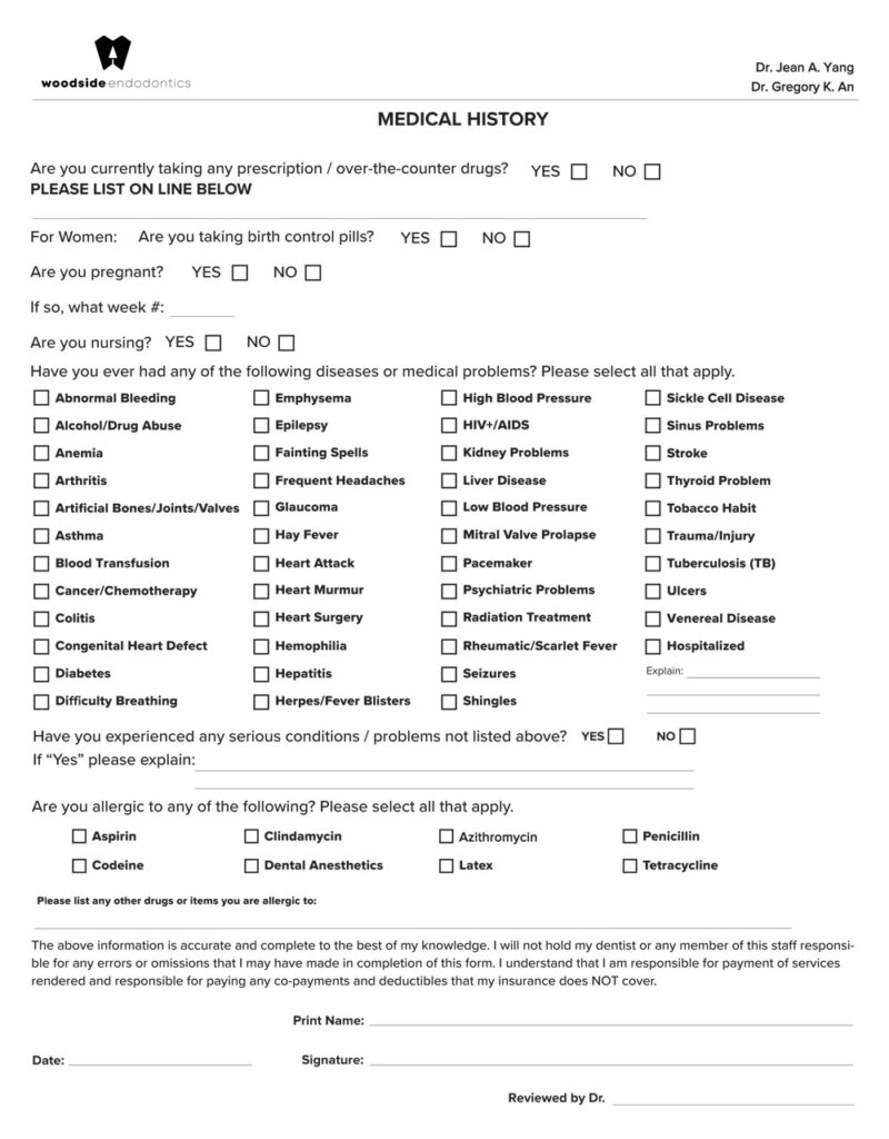 Now you can complete patient information and medical history information from the comfort of your own home. Please select a form from the menu below. There is also an option to print the forms from your home printer if you choose to do so.